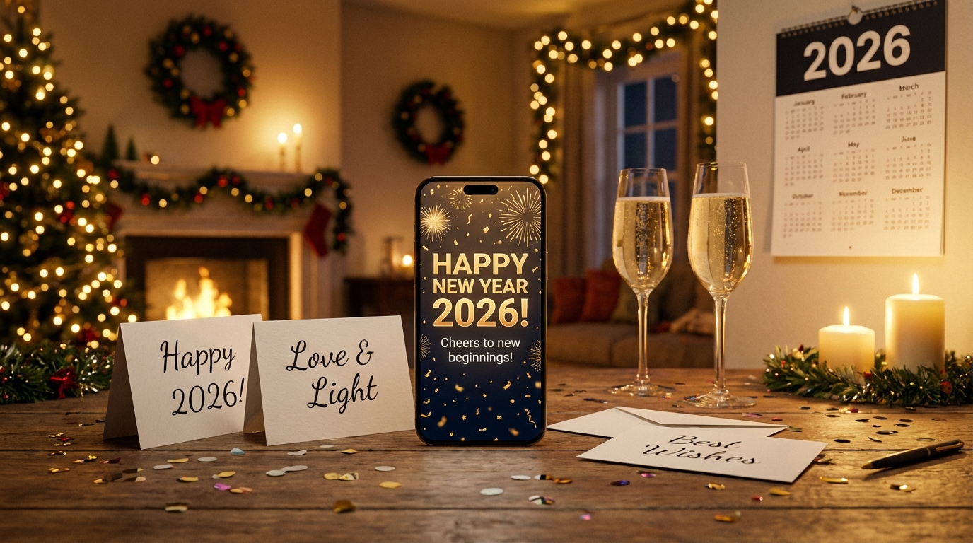 Gotowe kartki z życzeniami na Nowy Rok 2026 dostępne są w różnych formatach, w tym życzenia noworoczne na SMS, Messengera i Facebooka(1). To nie znaczy, że każdy format pasuje do każdego odbiorcy.