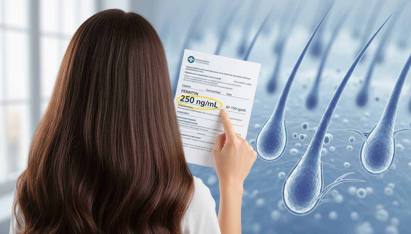 Niedobór ferrytyny staje się klinicznie istotny dla włosów już przy wartościach poniżej 70 ng/mL. To moment, gdy mieszki włosowe zaczynają otrzymywać mniej tlenu niż potrzebują.