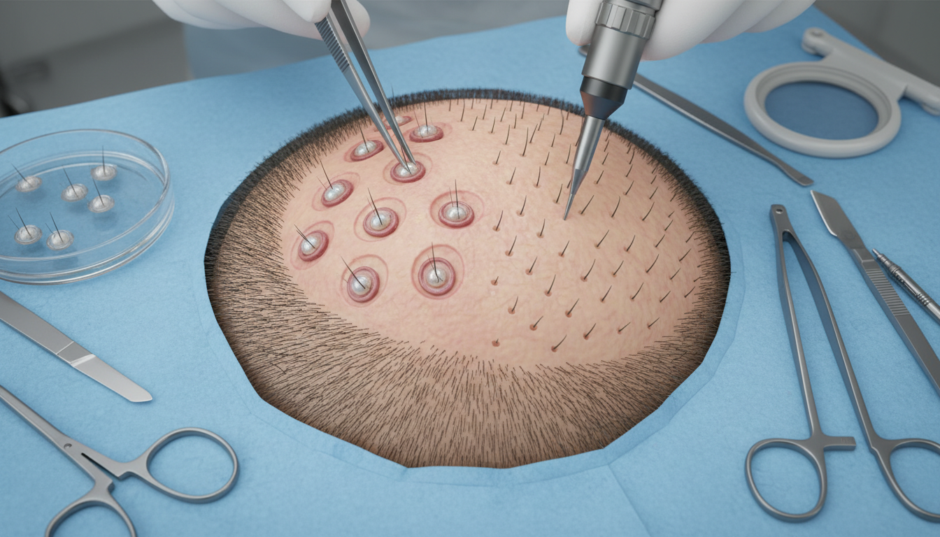 FUE to rewolucja w transplantologii. Zamiast wycinać pasek skóry, chirurg używa specjalnego narzędzia o średnicy 0,8-1,0 mm do wyciągania pojedynczych jednostek mieszkowych bezpośrednio ze skóry głowy.